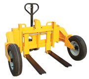 Designed to travel over rough ground Adjustable fork width (1m x 1200mm) Pneumatic tyres Robust hydraulic pump